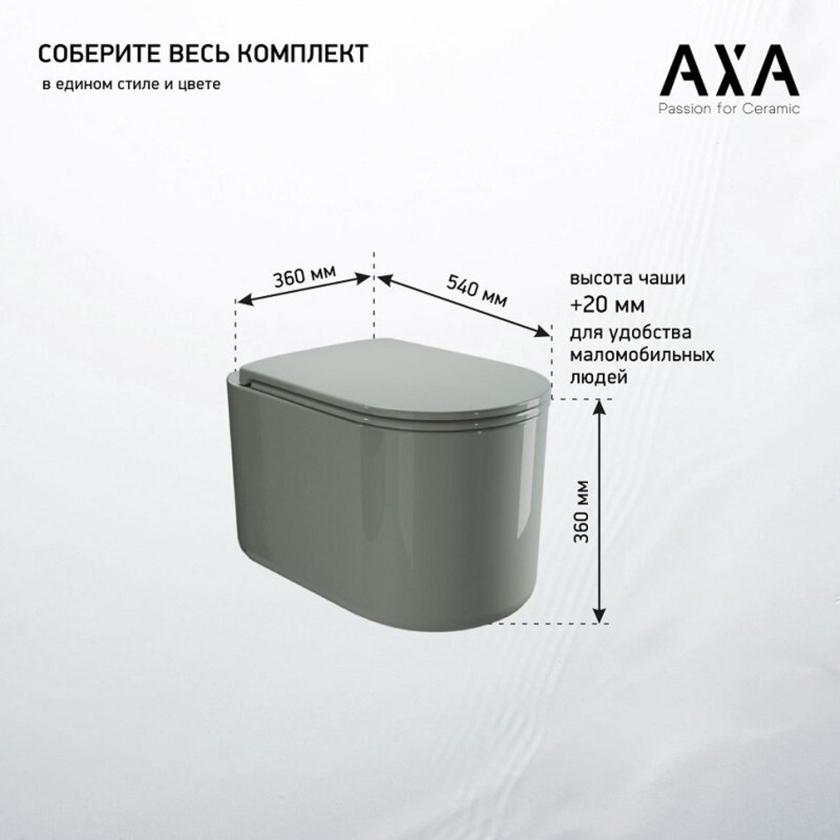 Подвесной унитаз Axa Delano WCWH9001003, безободковый, крышка-сиденье с микролифтом, серо-зеленый глянцевый