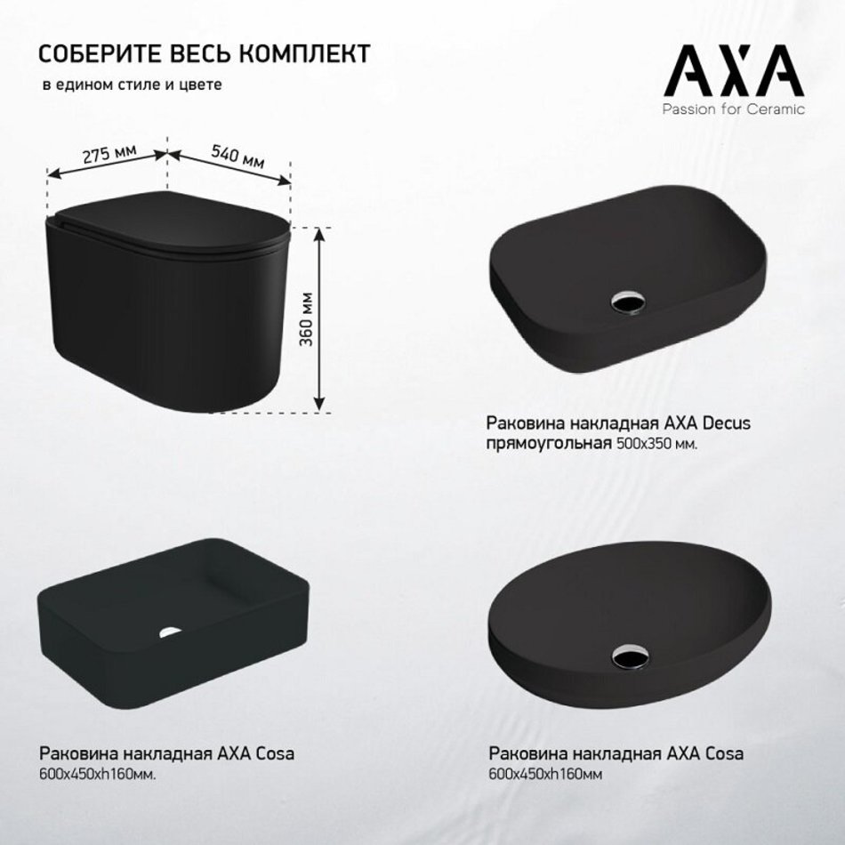 Подвесной унитаз Axa Delano WCWH9001007, безободковый, крышка-сиденье с микролифтом, черный матовый
