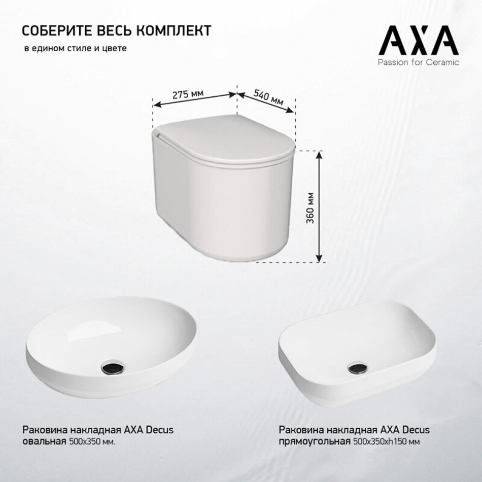 Подвесной унитаз Axa Delano WCWH9001012, безободковый, крышка-сиденье с микролифтом, белый матовый