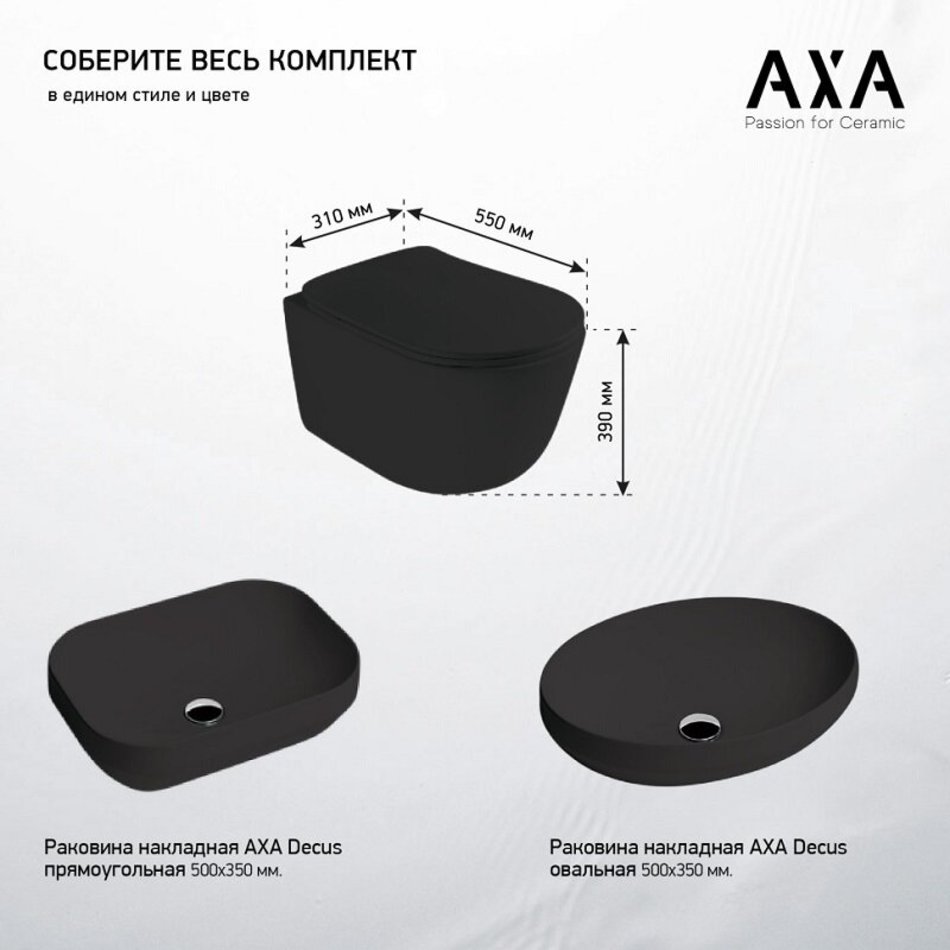 Подвесной унитаз Axa Eva A-Sound WCWH8801707, безободковый, сиденье с микролифтом, черный матовый