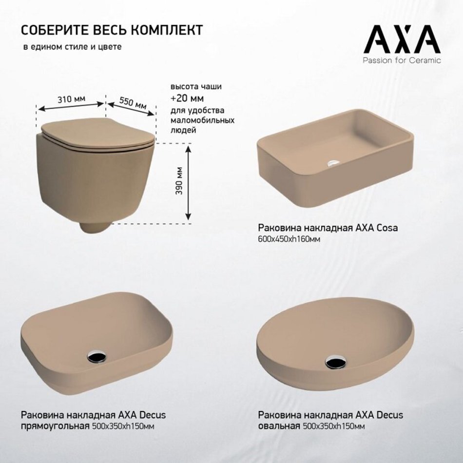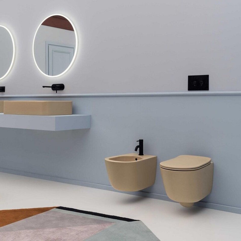 Подвесной унитаз Axa Eva WCWH8801010, безободковый, сиденье с микролифтом, бежевый матовый