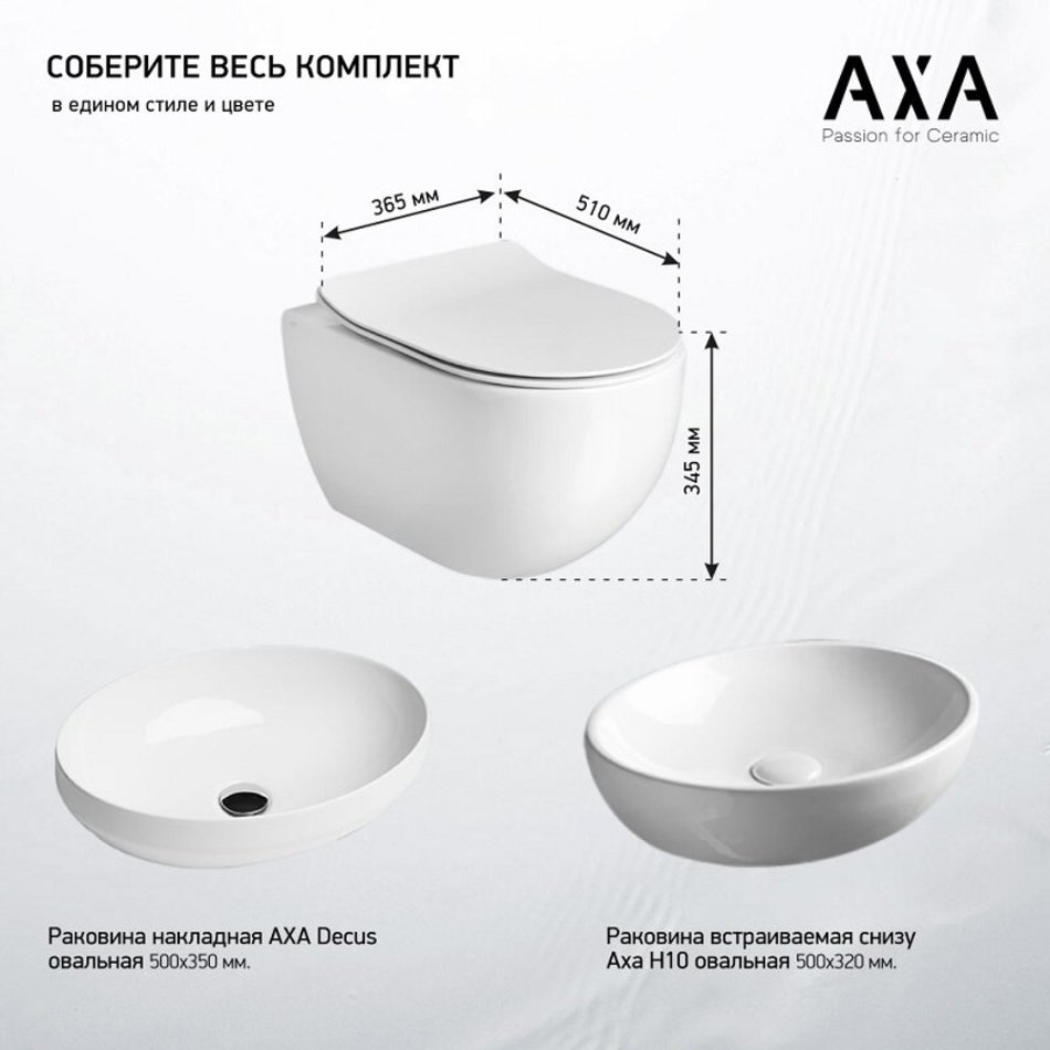 Подвесной унитаз Axa Glomp WCWH201001, безободковый, сиденье с микролифтом, белый