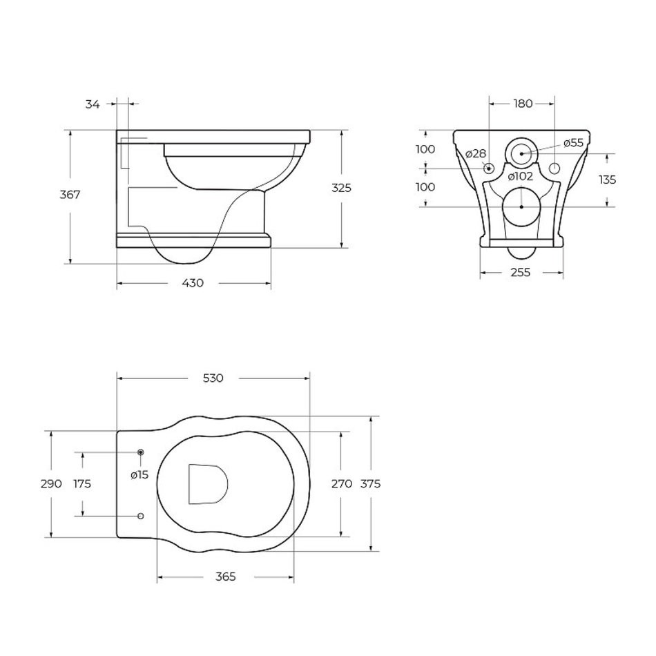 - Размер унитаза: 37.5 x 53 x 36.7 см