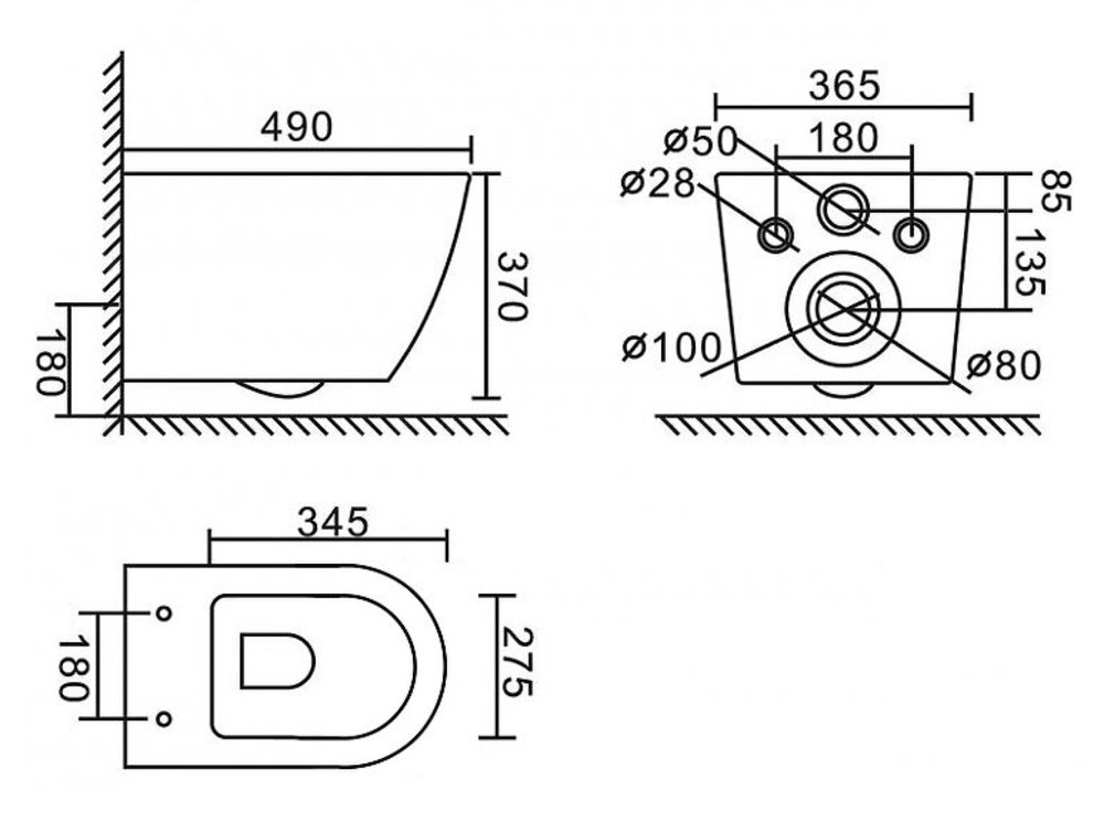- Размер унитаза: 36.5 x 49 x 37 см