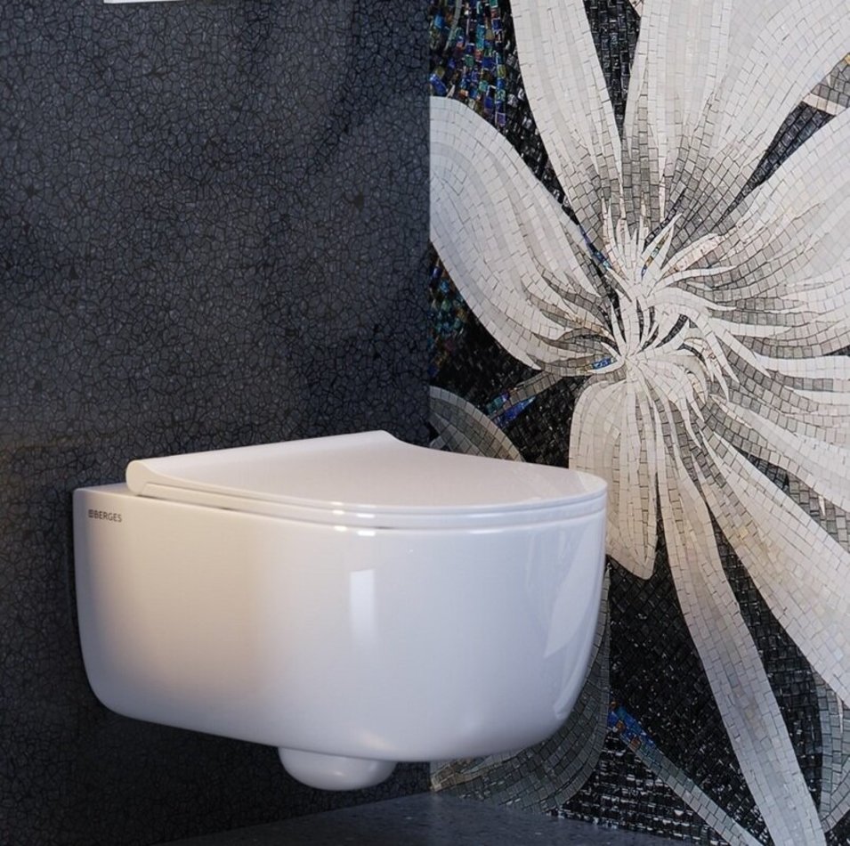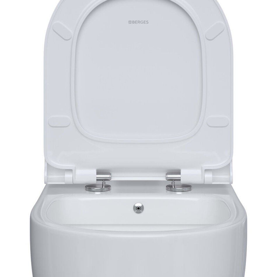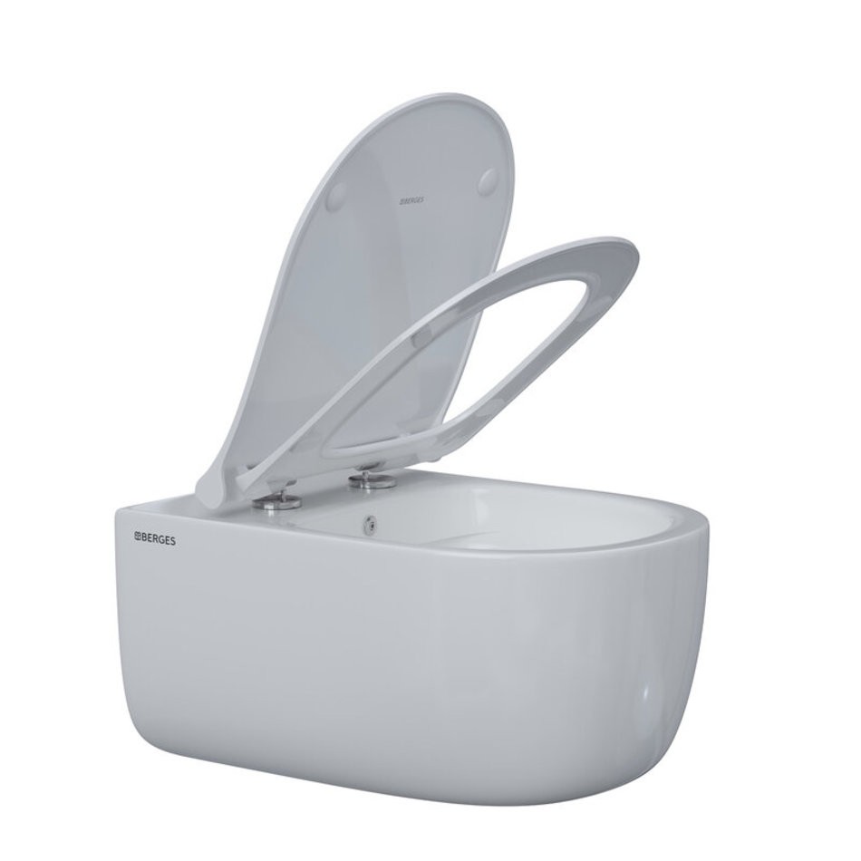 Подвесной унитаз Berges Ego XL Real Rimless 082138, безободковый, крышка-сиденье микролифт, с функцией биде, цвет белый