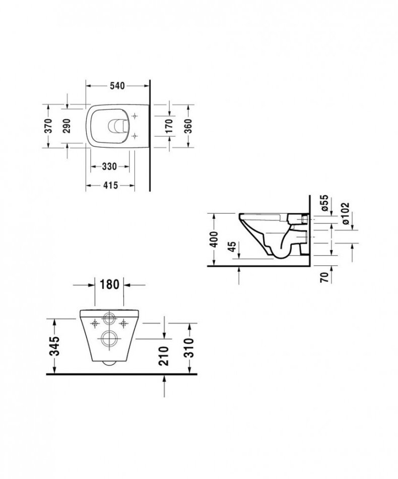 Duravit DuraStyle, артикул 45520900A1 - Унитаз подвесной - Duravit арт. 2552090000, в комплекте с Duravit арт. 0063790000 сиденье с крышкой, с функцией плавного закрытия (SoftClose). Для скрытого бачка и систем инсталляции. Цвет - белый, гарантия - 5 лет, производство - Германия. Крепление Durafix для скрытого монтажа включено в поставку. Если не используется инсталляция, рекомендуется DURAVIT арт. 0065000000 - крепеж для унитазов и биде (диаметр Ø 12 x 180 мм). Рекомендуемая высота установки от чистового пола - 400 мм. Размер упаковки - 560 x 400 x 430 мм.