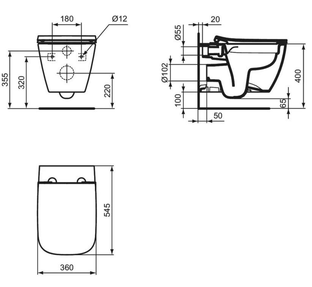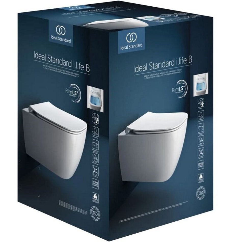 Подвесной унитаз безободковый Ideal Standard i.life B, технология RimLS+, крышка-сиденье с микролифтом, белый, T533001