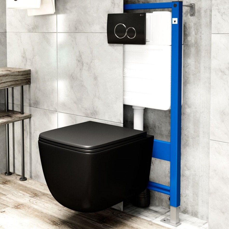 Подвесной унитаз безободковый POINT Меркурий PN41831ВМ, черный матовый.