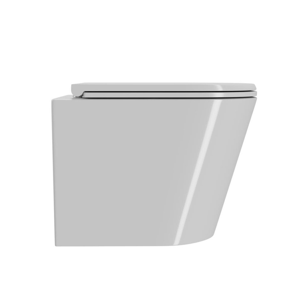 Безободковый, подвесной унитаз с ультратонким, антибактериальным сиденьем с плавным закрыванием и легкосъемным механизмом, петли хром.