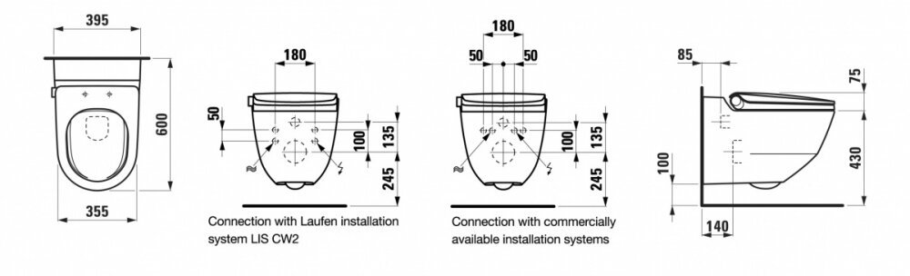 Подвесной унитаз-биде Laufen Cleanet Riva 8.2069.1.400.000.1 безободковый