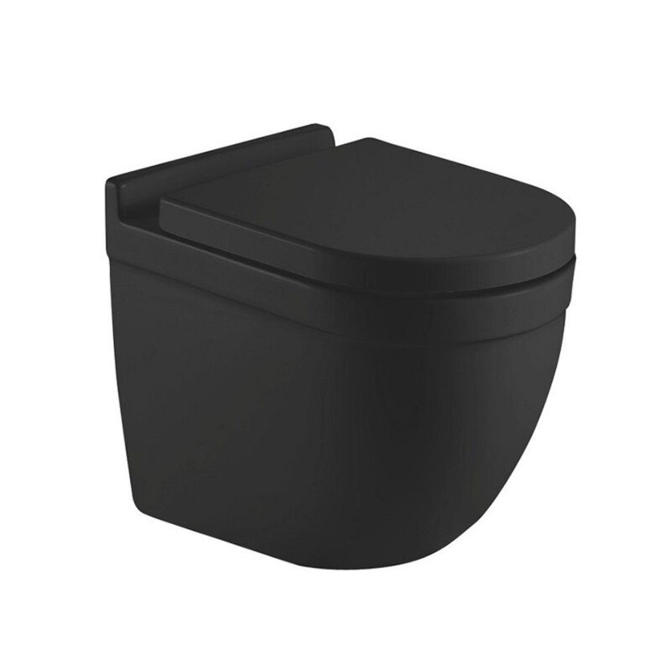 Подвесной унитаз CeramaLux 2198MB 36 x 52 x 41 см безободковый, сиденье DP, Soft Close, цвет черный матовый, крышка микролифт