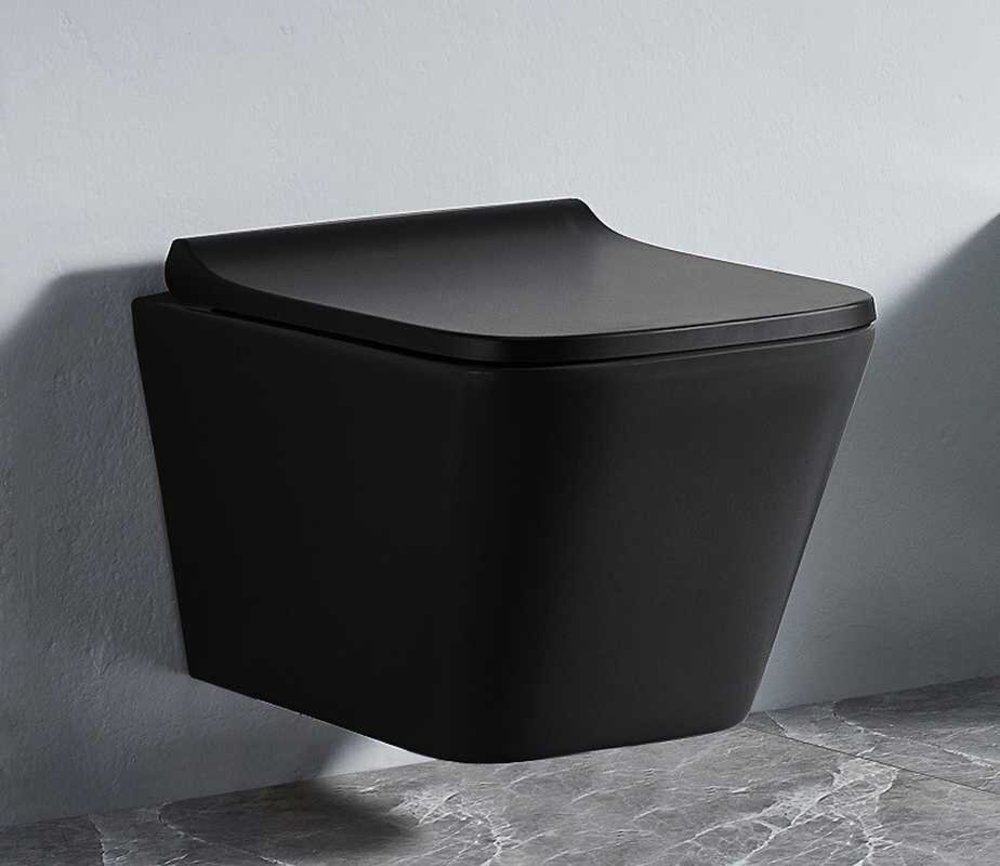 Подвесной унитаз CeramaLux 5171MB 34 x 49 x 36 см безободковый, сиденье DP, Soft Close, цвет черный матовый, крышка микролифт