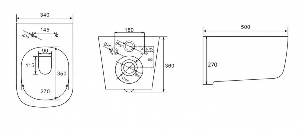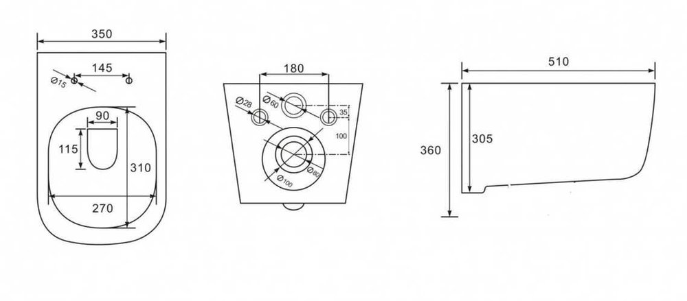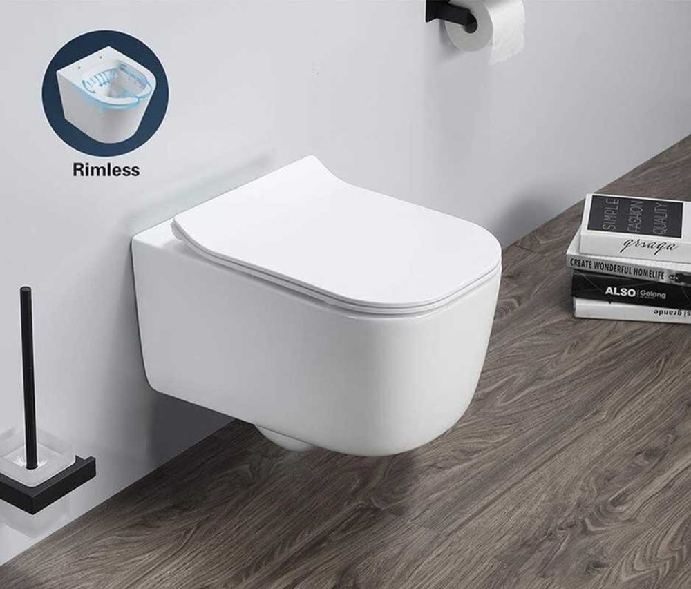 Подвесной унитаз CeramaLux B2341 35 x 50 x 36 см безободковый, сиденье ультратонкое, Soft Close