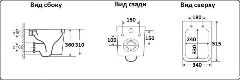 Подвесной унитаз Ceramalux безободковый, крышка микролифт, белый, NS5170