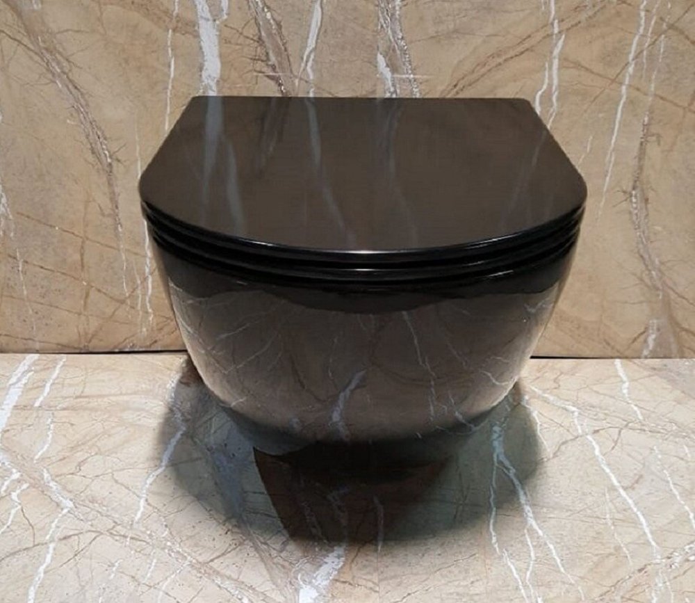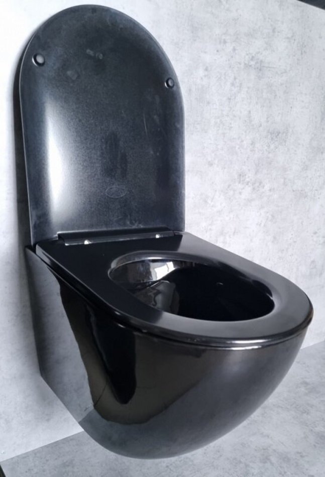 Подвесной унитаз Ceramalux безободковый, крышка микролифт, черно-глянцевый, 2196-18N