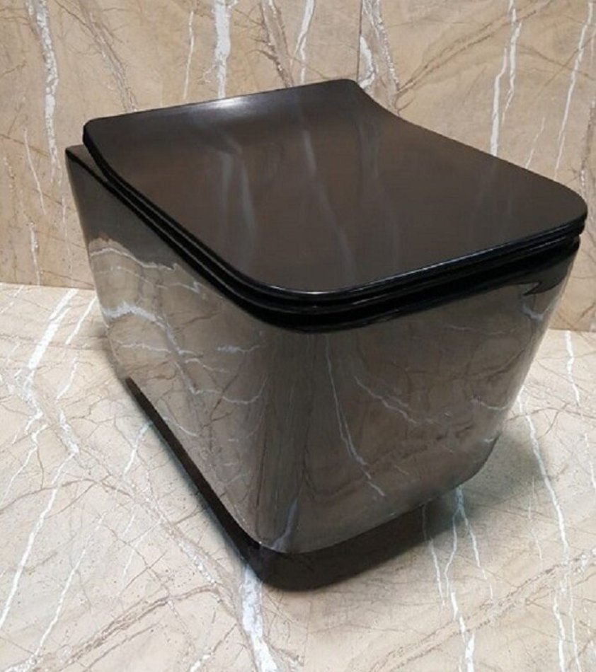 Подвесной унитаз Ceramalux безободковый, крышка микролифт, черно-глянцевый, 5170-18