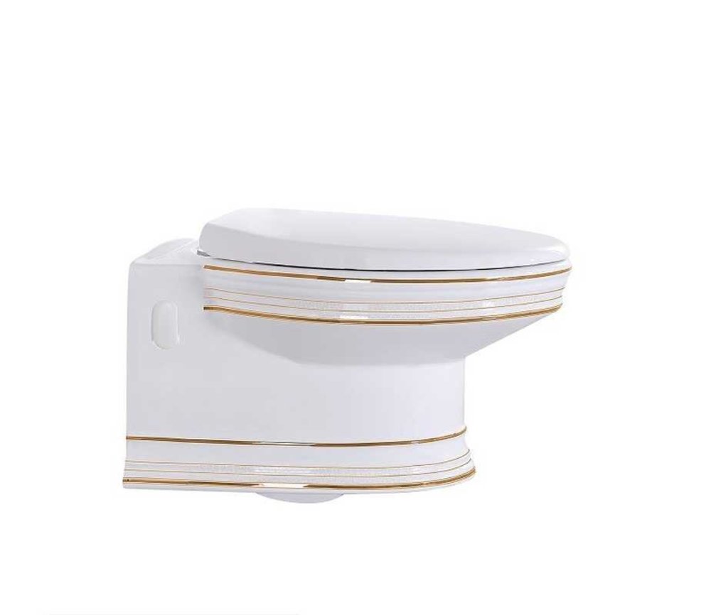 Подвесной унитаз CeramaLux Lux Classic 4288 37 х 52 х 37 см безободковый, сиденье DP, Soft Close, белый, золото