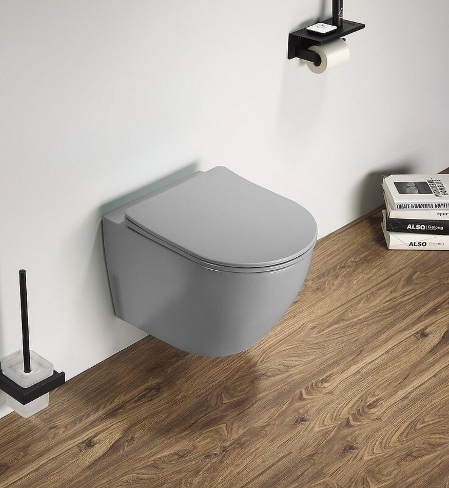 Подвесной унитаз Ceramalux NС, безободковый, крышка микролифт, светло-серый матовый, 2197MH