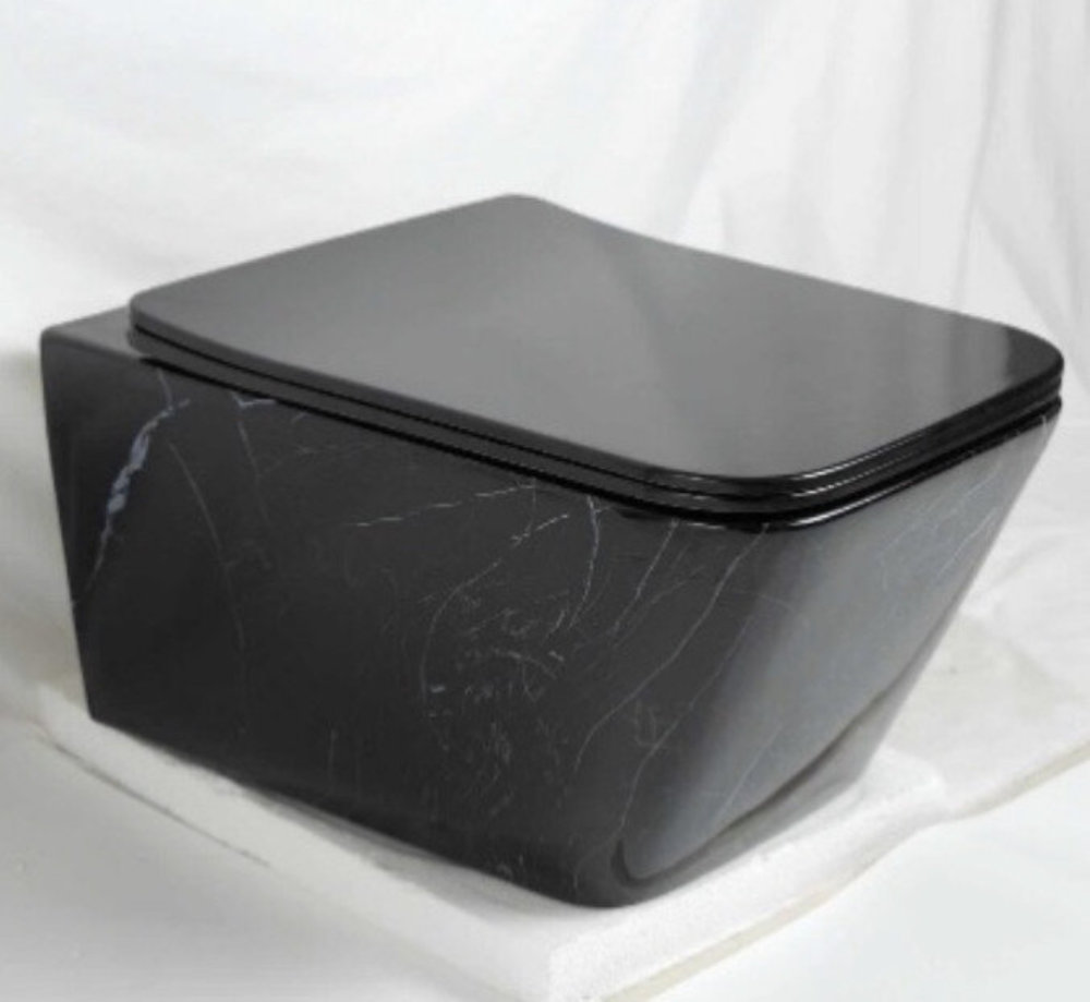Подвесной унитаз CeramaLux Tornado, 2215BW, безободковый, крышка-сиденье с микролифтом, черный мрамор