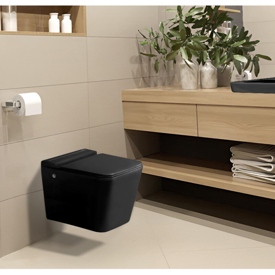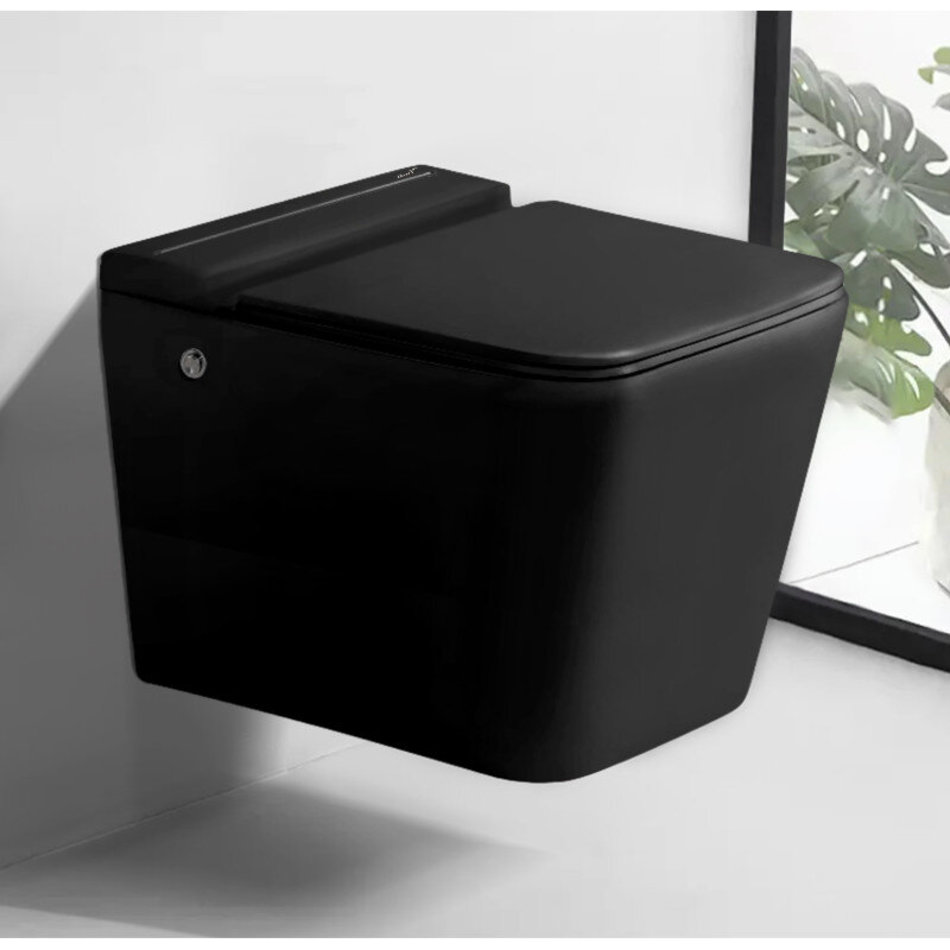 Подвесной унитаз Ceruttispa Maiella Aria CT10192, безободковый, крышка-сиденье микролифт, с импульсным сливом, цвет черный матовый