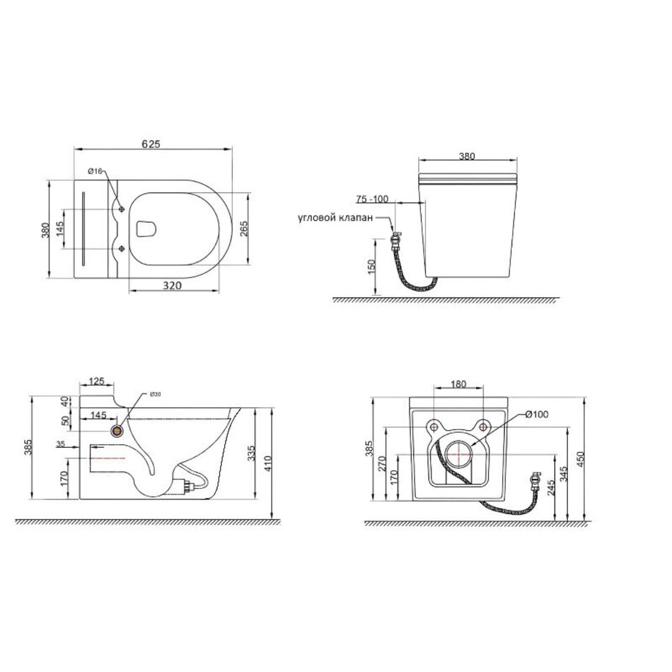 Подвесной унитаз Ceruttispa Nautilus Aria CT10195, безободковый, крышка-сиденье микролифт, с импульсным сливом, цвет белый
