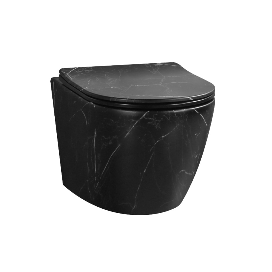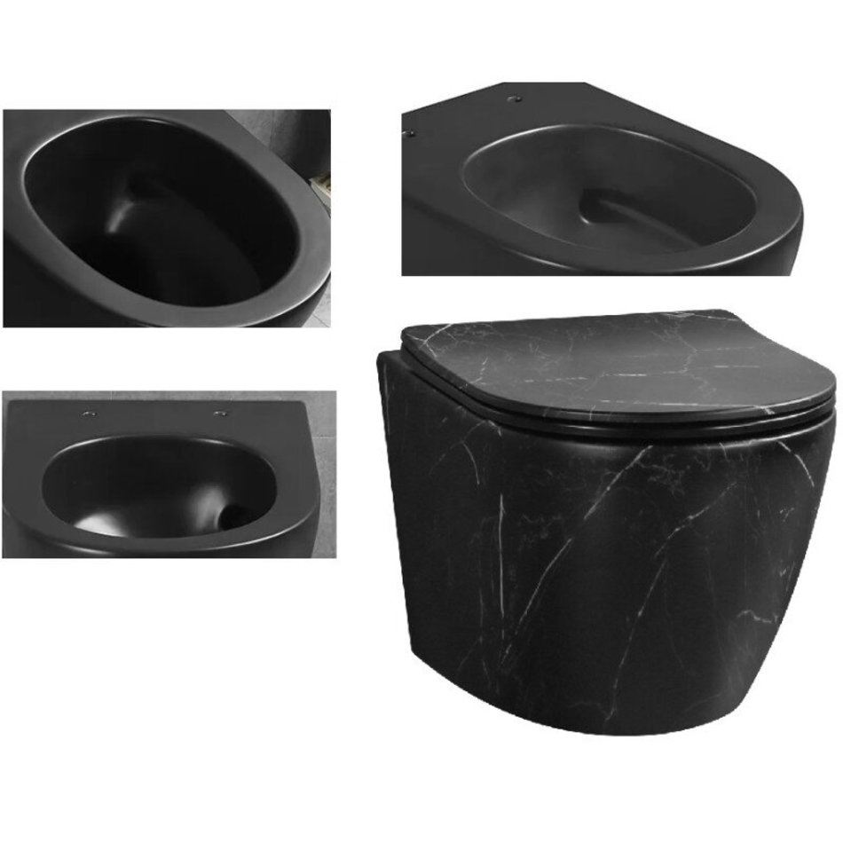 Подвесной унитаз Ceruttispa Sella Aria CT9531 Tornado MMB безободковый, сиденье с микролифтом, цвет черный мрамор матовый