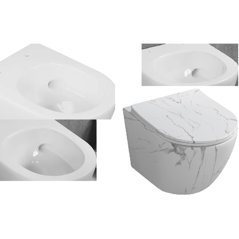 Подвесной унитаз Ceruttispa Sella Aria CT9532 Tornado MMW безободковый, сиденье с микролифтом, цвет белый мрамор матовый