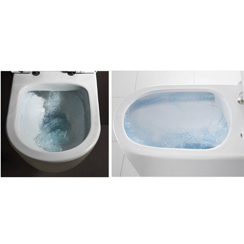 Стекловидный фарфор – это особый вид эмали, которой покрывают изделия, обладающий высочайшим коэффициентом плотности. Такой санфаянс имеет идеально гладкую поверхность и надежно защищен не только от влаги или загрязнений, но и от бактерий. Покрытие устойчиво к истиранию и воздействию химических веществ. Вода и грязь «скатываются» с поверхности и не впитываются в нее.Особенность подвесных унитазов Cerutti SPA в эргономичном использовании пространства. Модель подвесных унитазов можно разместить в уборной любого размера. Также преимуществом выбора такого типа унитаза является отсутствие труднодоступных мест для уборки/мытья пола. Безободковые модели не имеют мест, где могла бы скапливаться грязь. В связи с этим унитаз дольше остается чистым и меньше требует уборки едкими моющими средствами.В комплекте присутствует легкосъемное сидение с крышкой, оснащенное системой микролифт (для плавного и бесшумного опускания). Крепления к чаше выполнены из стали, а само сидение - из долговечного полимерного материала – дюропласта с антибактериальным покрытием. Снятие осуществляется одним нажатием кнопки.Антивсплеск обеспечивается конструкцией чаши (воронкообразной). Каскадная система слива омывает всю внутреннюю поверхность чаши. Это обеспечивает качественное очищение.