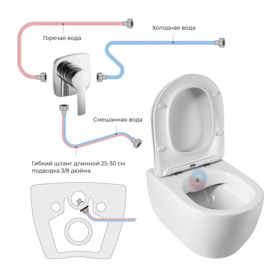 Подвесной унитаз Cezares Comfort безободковый, с функцией биде, без сиденья, белый, CZR-191-TH/BS
