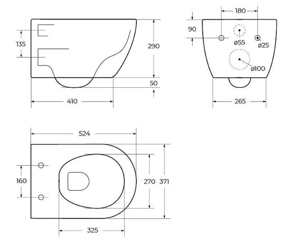 - Размер унитаза: 37.1 x 52.4 x 34 см