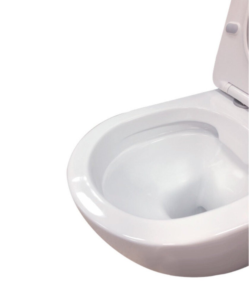 Безободковый подвесной унитаз Comforty 103 с антибактериальной легкосъёмной крышкой-сиденьем с функцией плавного закрывания. Безободковая конструкция чаши обеспечивает высочайший уровень гигиены и удобство в уборке из-за отсутствия труднодоступных мест.