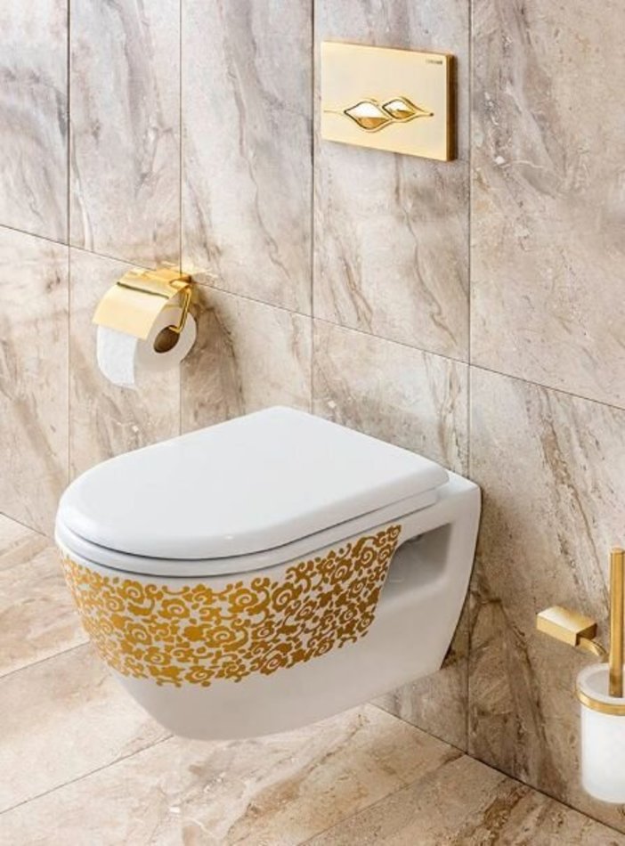 Подвесной унитаз Creavit TP325, декор золото/цветы