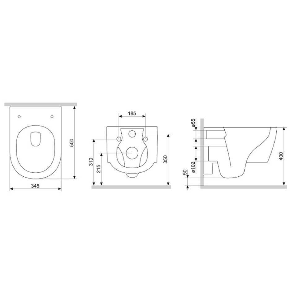 Комплектация: подвесной унитаз с сиденьем и комплектом крепежей.