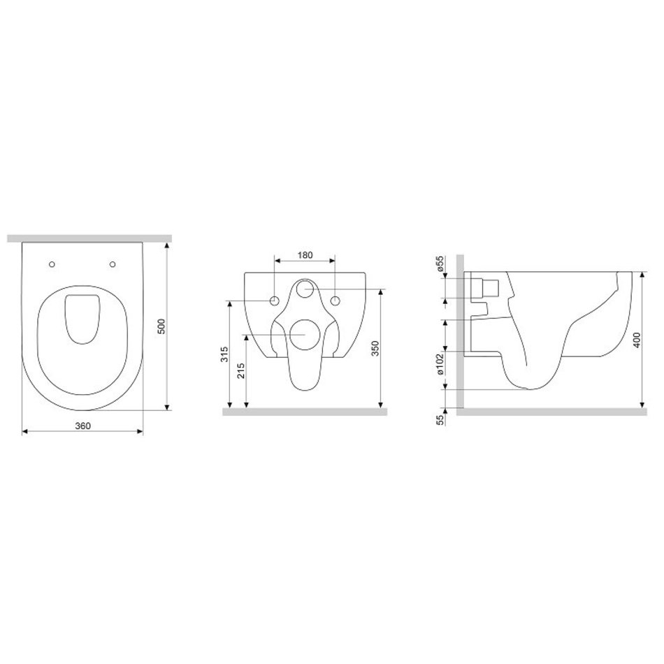 Комплектация: подвесной унитаз с сиденьем и комплектом крепежей.