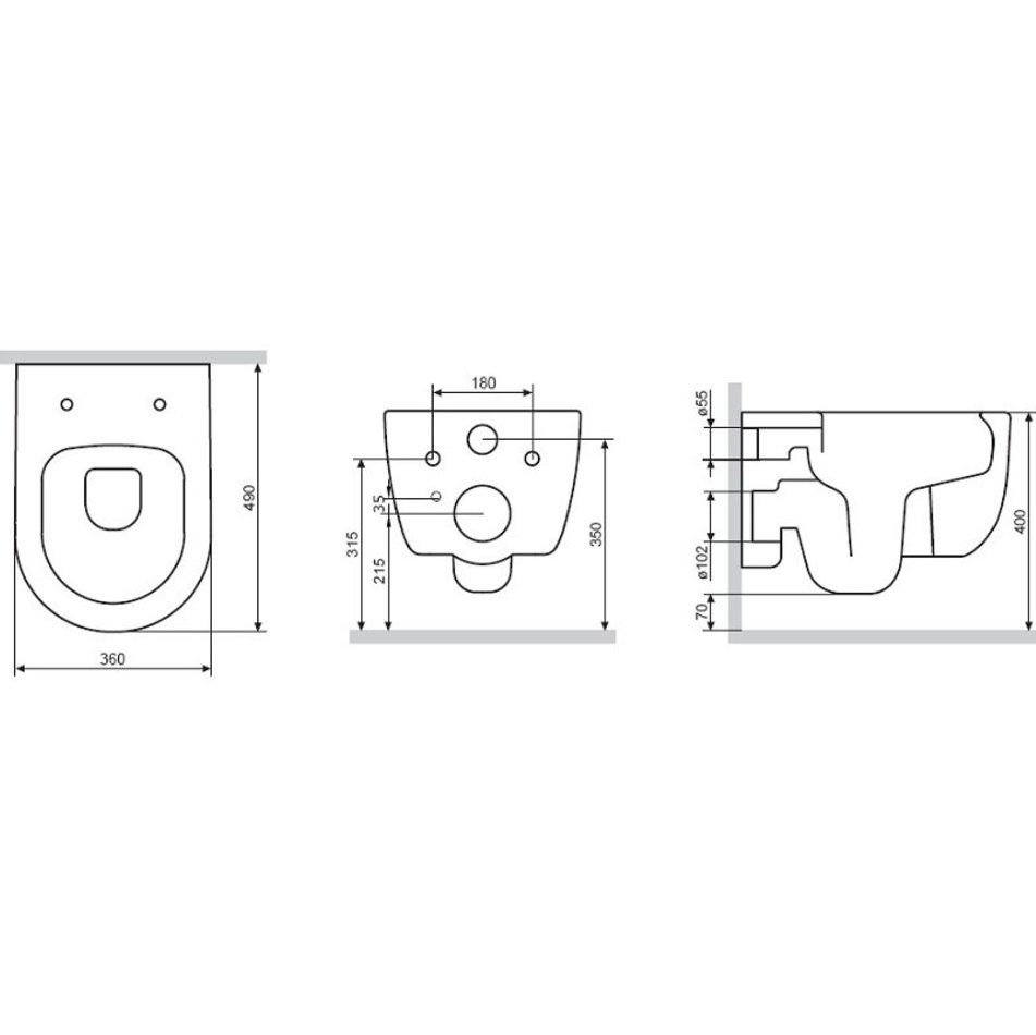 Комплектация: подвесной унитаз с сиденьем и комплектом крепежей.