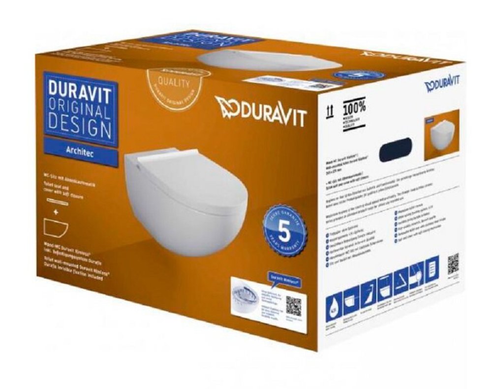 Подвесной унитаз Duravit Architec 45726900A1, Rimless, сиденье микролифт, безободковый, белый
