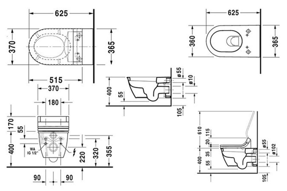 В комплекте компоненты для подключения SensoWash со скрытой подачей воды и крепление Durafix. Модель совместима с крышкой-биде Duravit Sensowash Starck C (6100010020), заказывается отдельно.