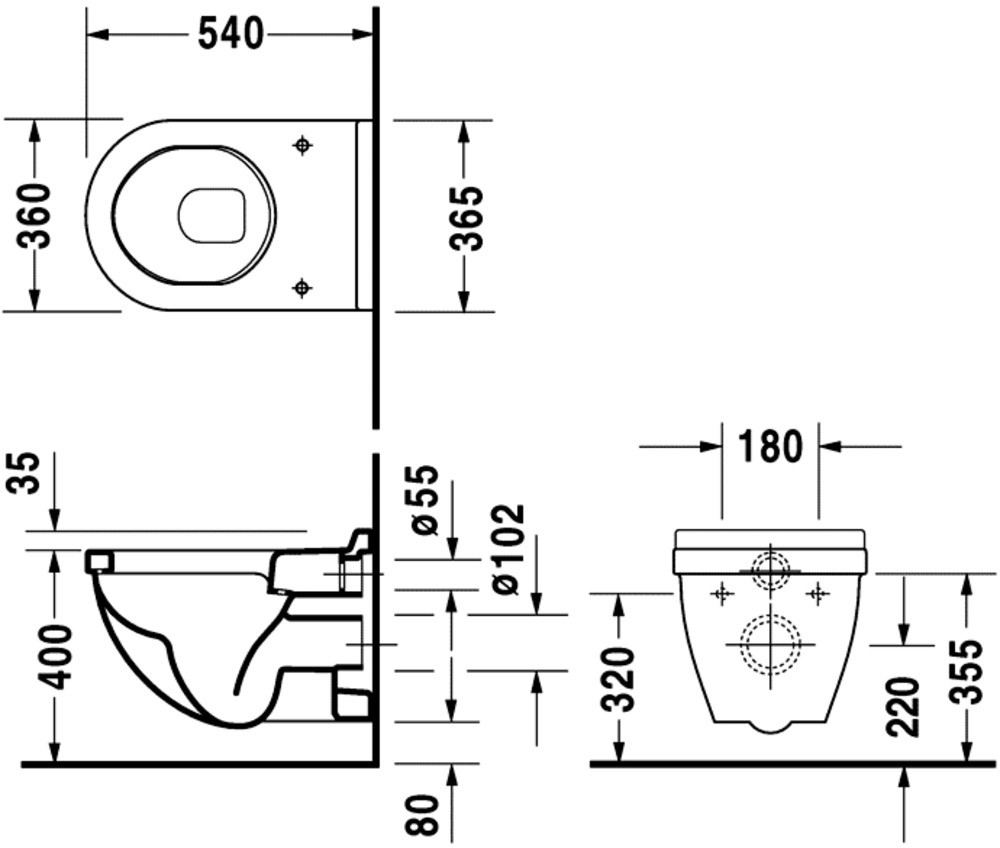 Подвесной унитаз Duravit Starck 3, 2200090000, белый