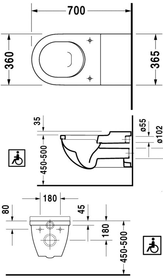 Подвесной унитаз Duravit Starck 3 2203090000, для инвалидов