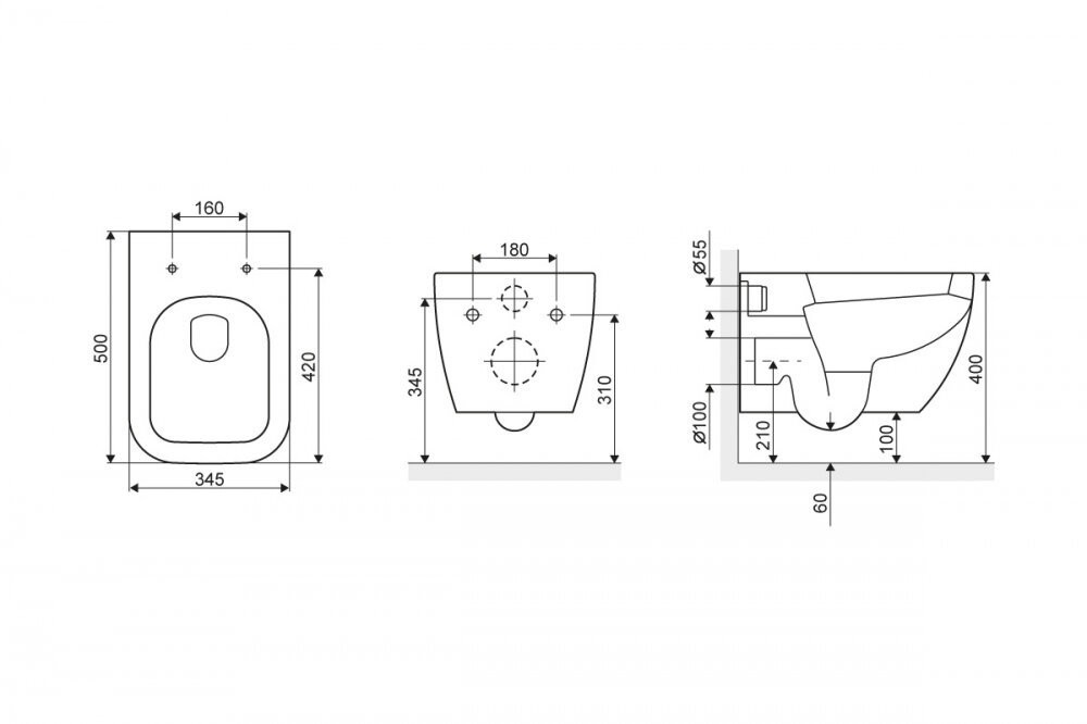 Подвесной унитаз Excellent Ness CENL.3509.500.WH, безободковый с сиденьем микролифт
