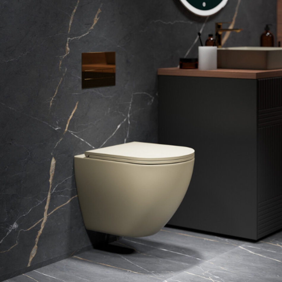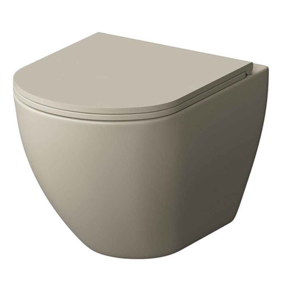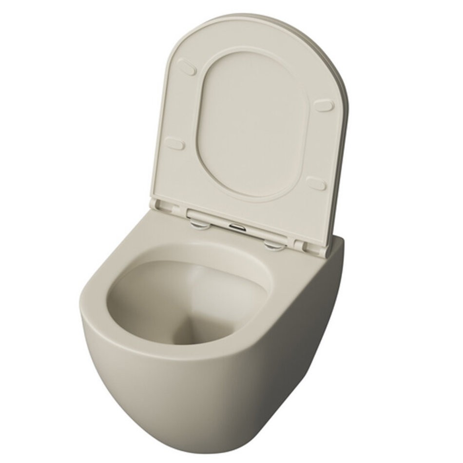 Подвесной унитаз Grossman, бежевый матовый, безободковый, крышка, микролифт, тонкая, GR-4455BEMS