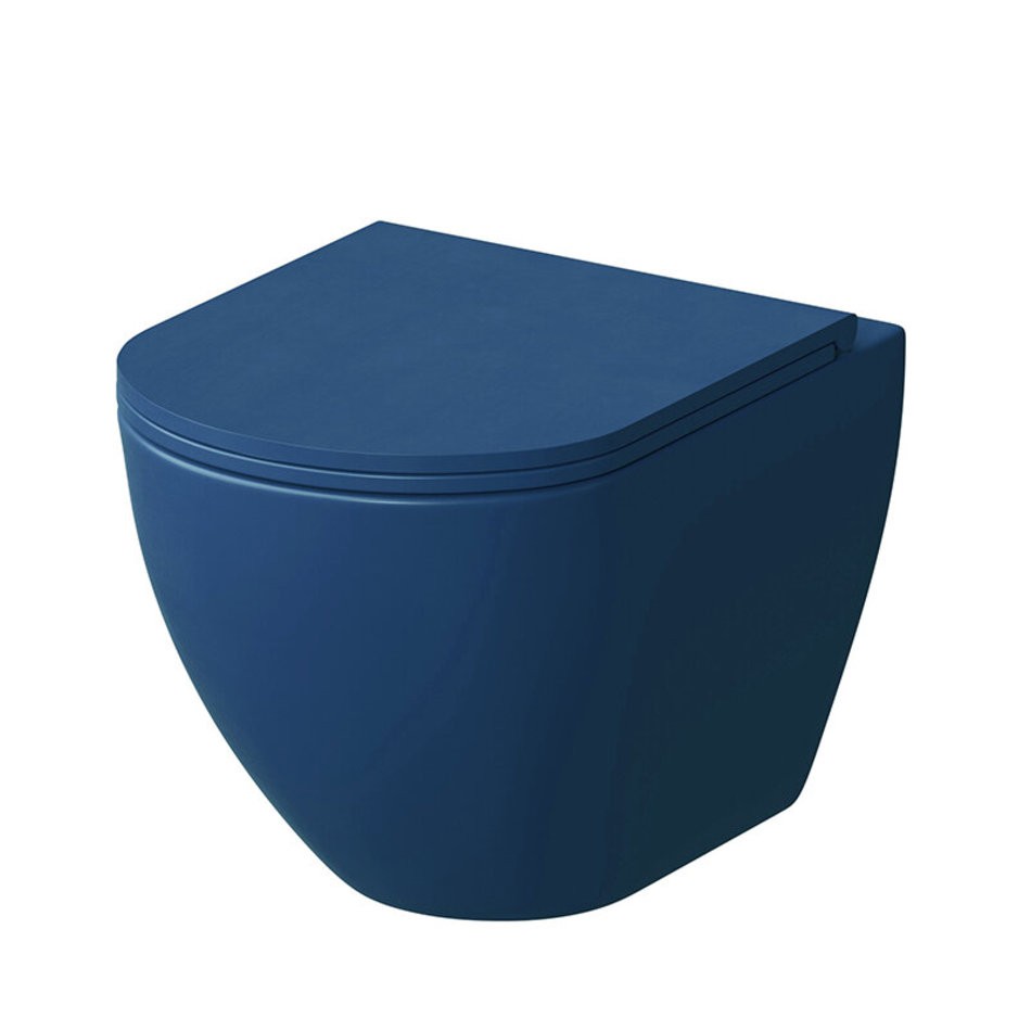 Подвесной унитаз Grossman, безободковый, крышка микролифт, синий матовый, GR-4455BLMS