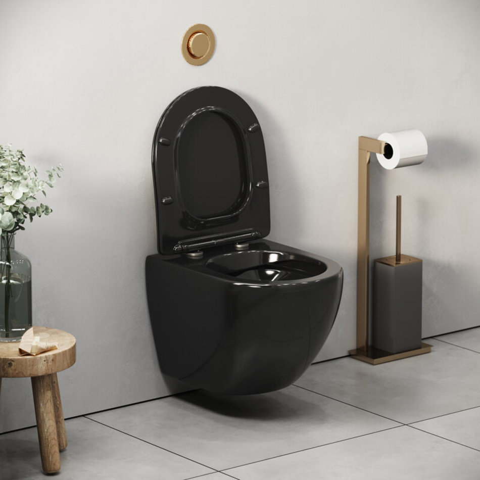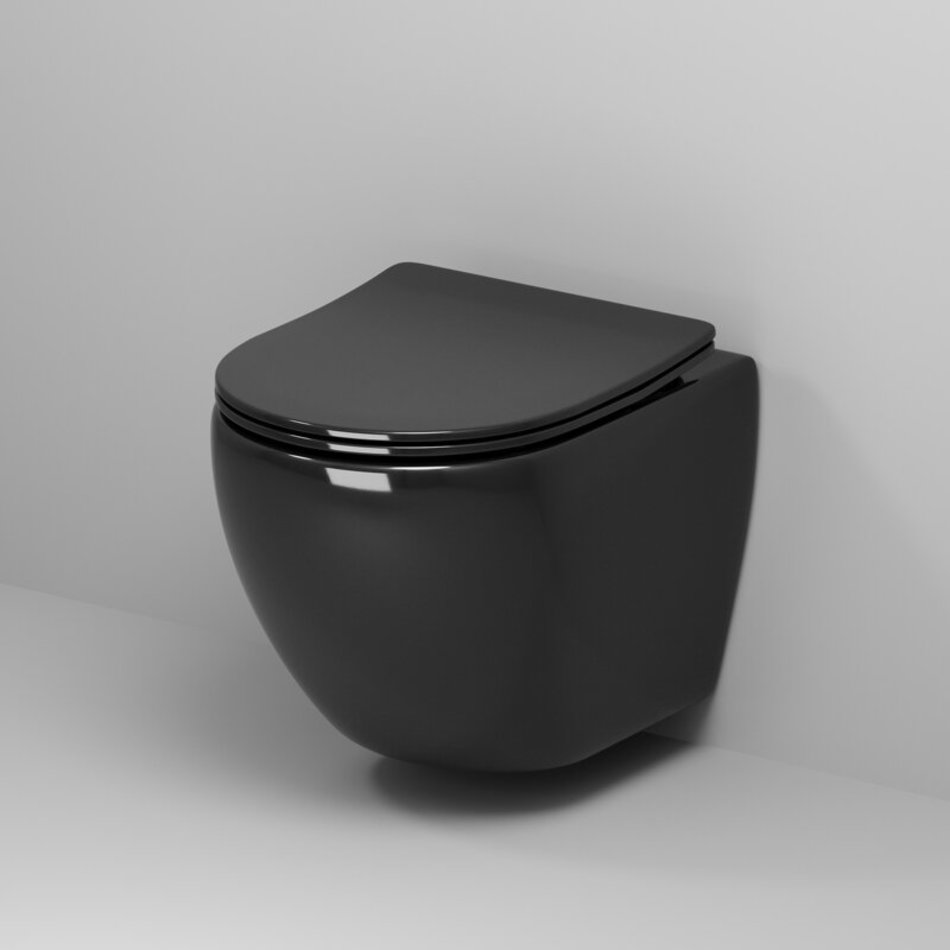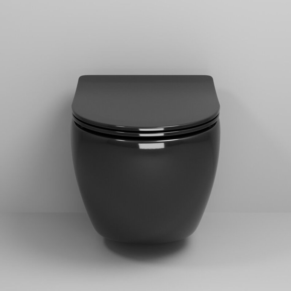 Подвесной унитаз Grossman Color, безободковый, крышка тонкая микролифт, черный, GR-4455BS