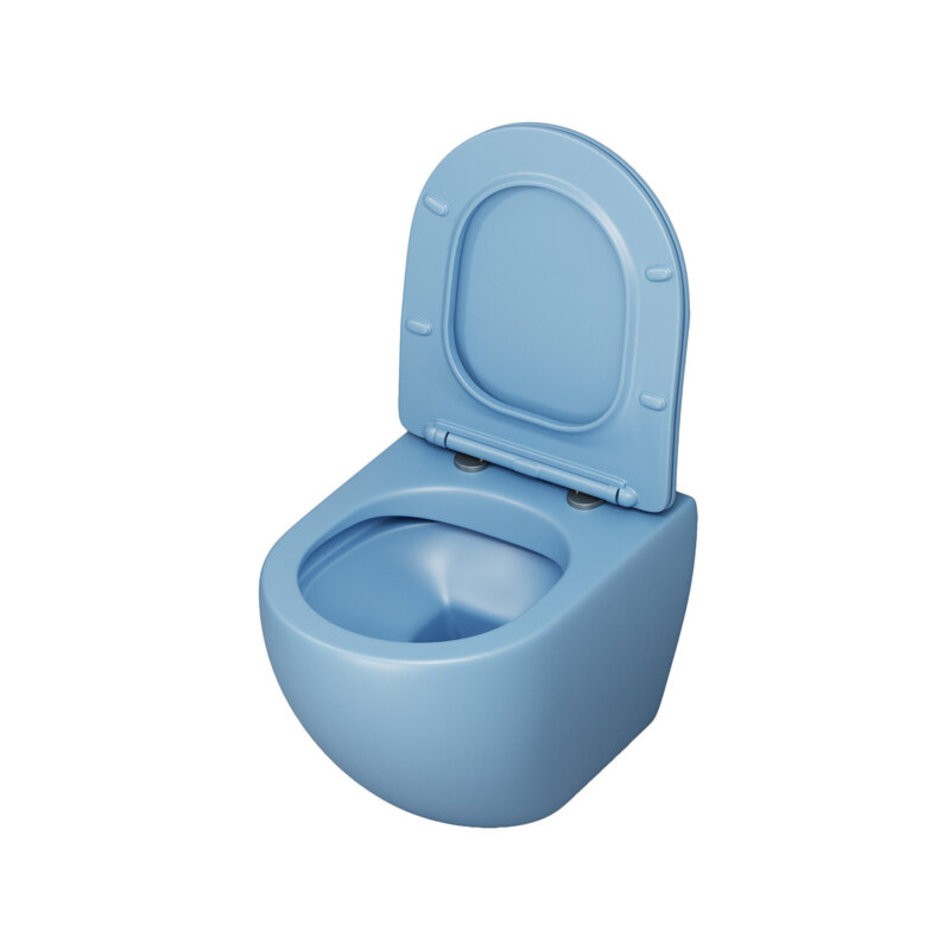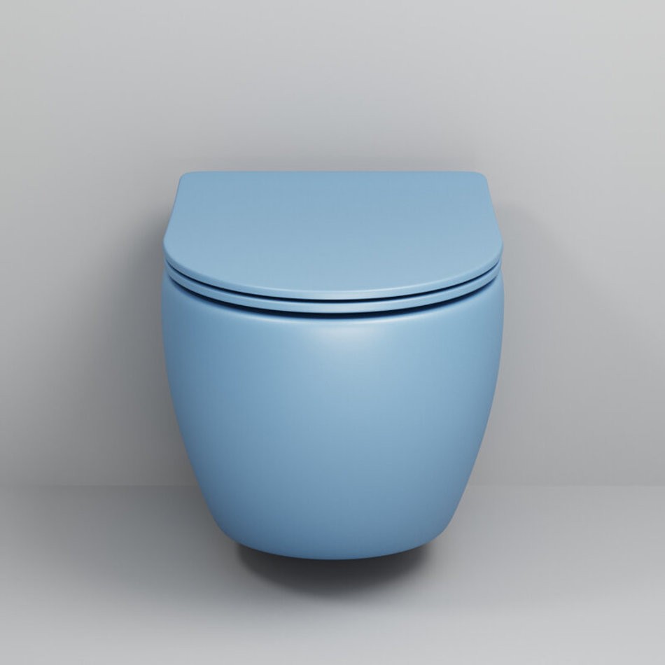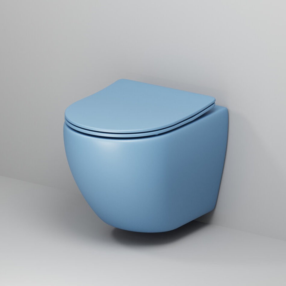 Подвесной унитаз Grossman Color, безободковый, крышка тонкая микролифт, голубой матовый, GR-4455BSMS