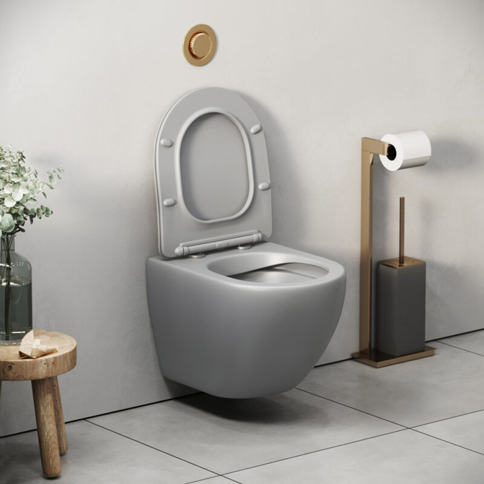 Подвесной унитаз Grossman Color, безободковый, крышка тонкая микролифт, светло-серый матовый, GR-4455GLMS