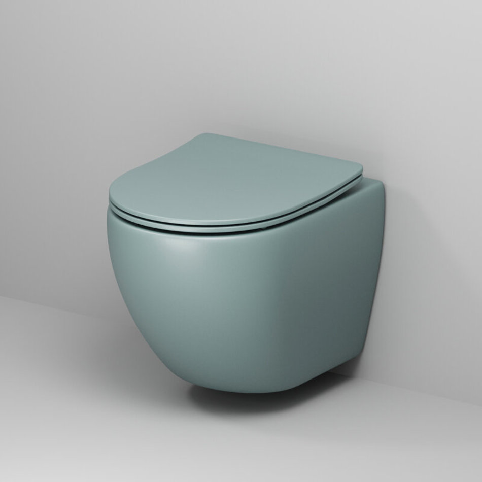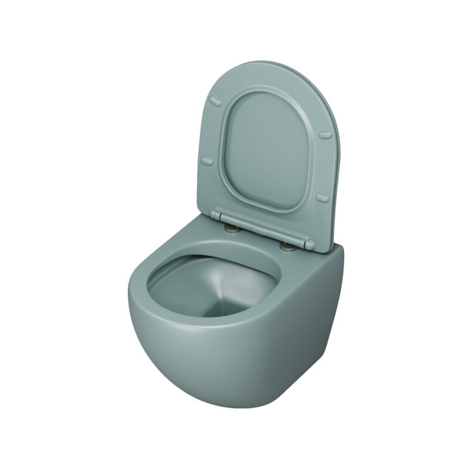 Подвесной унитаз Grossman Color, безободковый, крышка тонкая микролифт, мятный матовый, GR-4455MNMS