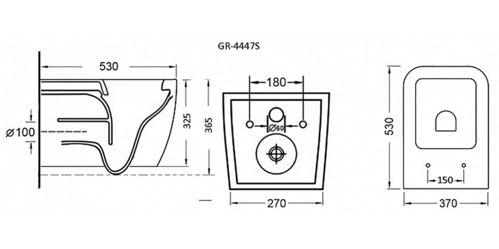 Подвесной унитаз Grossman GR-4447S, безободковый с тонкой крышкой