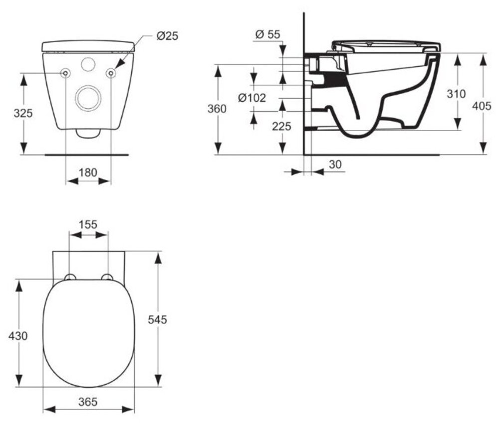 Подвесной унитаз Ideal Standard Connect E8035MA без сиденья, белый