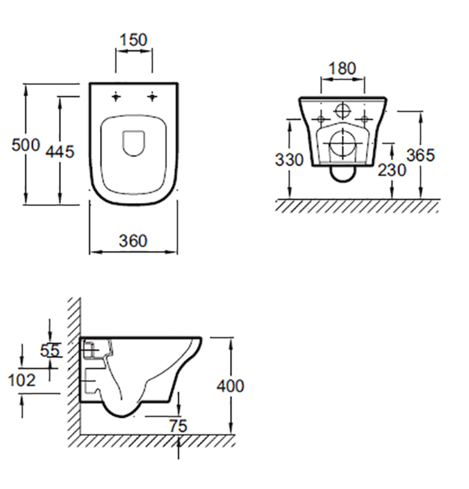 - Безободковая конструкция Rimless: высочайший уровень гигиены.