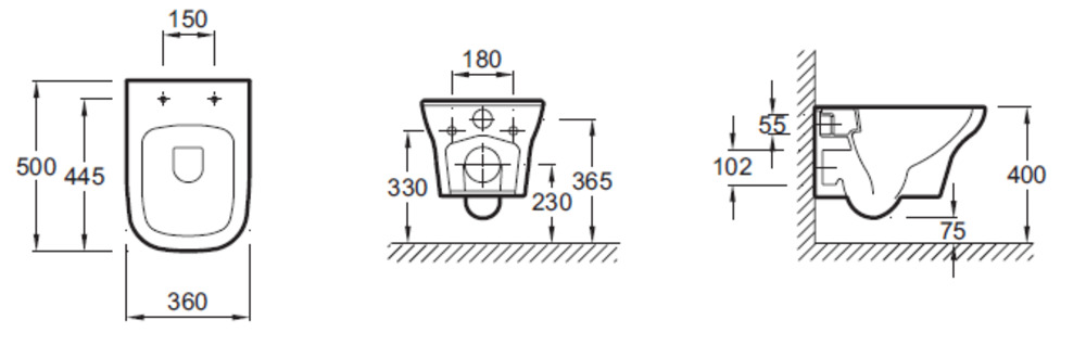- Безободковая конструкция Rimless: высочайший уровень гигиены.